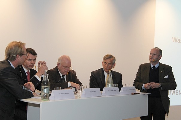 “The Mittelstand as a part of German Identity” – was the focus of the event held by the Deutsche Nationalstiftung on January 26th 2016. About 160 business representatives accepted the invitation and attended the event in Cologne. Prof. Dr. Klaus Schweinsberg moderated the panel with Dr. Patrick Adenauer, Prof. Dr. Richard Schröder, Prof. Dr. Hermann Simon and Dr. Dirk Janßen. The panel centred on the challenges and opportunities facing the German Mittelstand today and its unique position in the world. Against the background of the German Reunification, the Deutsche Nationalstiftung was founded among others by former German Chancellor Helmut Schmidt. The non-partisan and non-profit organisation aims to promote the political culture of Germany within the European Union and to provide a forum for discussion and comment on the pressing questions facing Germany today and in the future.